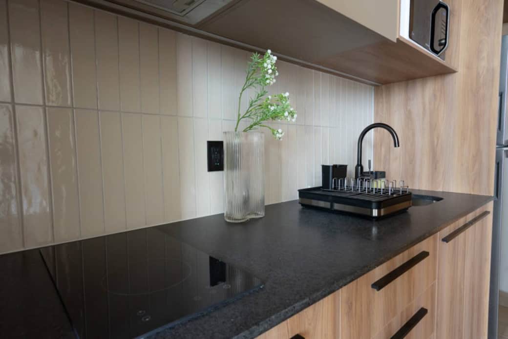 Cooking utensils, Kitchen stove, Kitchenette, Microwave, Refrigerator